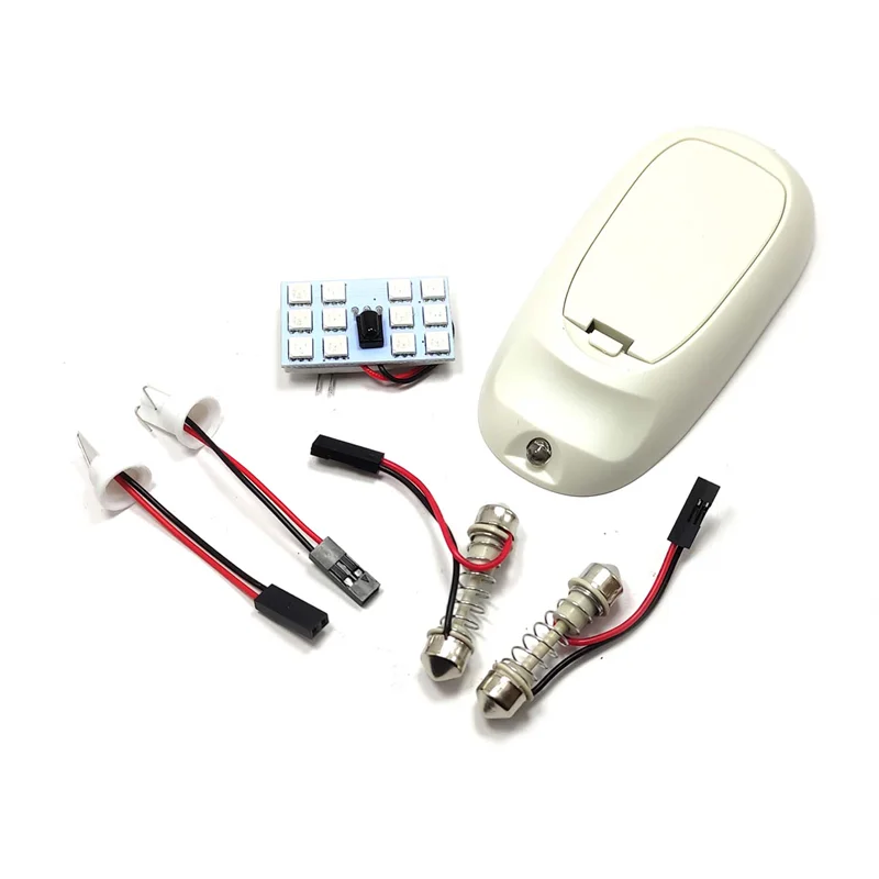 لامپ سقفی ریموتی دارای SMD های مولتی کالر با برد دارای چشمی ریموتی است که قابل نصب به عنوان چراغ سقفی خودرو و یا چراغ صندوق عقب آن است. این محصول دارای دو نوع سوکت نصب هست که متناسب با نوع خودرو قابل انتخاب است. همچنین این محصول دارای یک ریموت با قابلیت تعویض رنگ نور، میزان شدت نور و 4 نوع افکت نوری است.