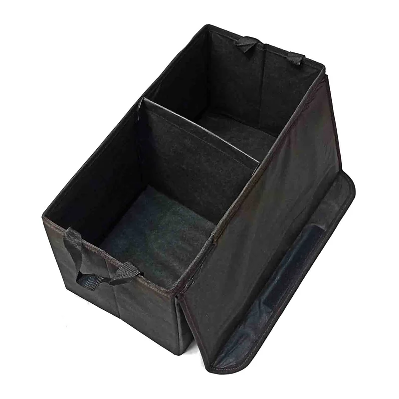 همیشه وسایل زیادی در صندوق عقب خودرو به صورت ثابت وجود دارد. این وسایل به دلیل حرکت خودرو معمولا جابجا می شوند و علاوه بر امکان گم شدن، ممکن است در صندوق خودرو ریخته یا پخش شوند. باکس نظم دهنده یک محصول بسیار کاربردی است که هم می تواند این وسایل را نظم دهد و هم از ریزش و پخش شدن یا حتی گم شدن آن ها جلوگیری کند. جنس این محصول بسیار باکیفیت است و دارای دوخت بسیار دقیق و چند لایه است. علاوه بر محفظه اصلی که با صفحه جدا شونده دو قسمت می شود، در کنار این محصول چندین جیب و محفظه هم برای وسایل کوچکتر وجود دارد.